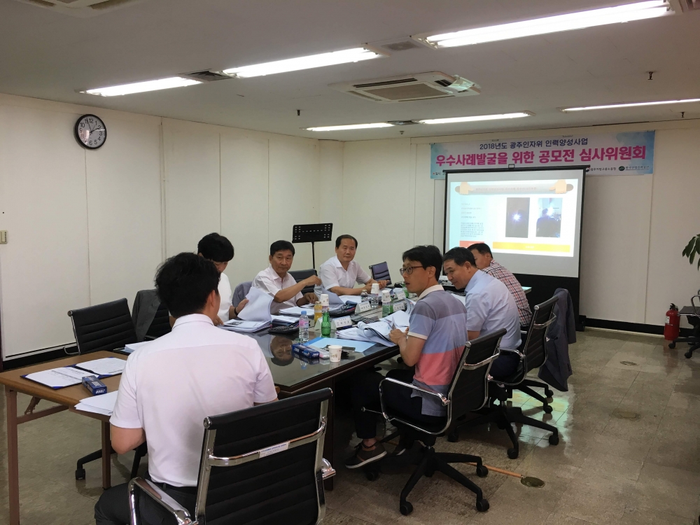○ 광주인자위 인력양성사업 우수사례 공모전 심사 ◦ 향후계획 : 7.25(수) 19:00 시상식 및 문화행사 진행예정 ◦ 장 소 : 5층 광주인자위 브레인스토밍룸 ◦ 주최/주관 : 광주지역인적자원개발위원회 ◦ 선정방법 : 각 공모작 별 채점 후 총점순으로 선정 ◦ 심사위원 : 유옥진 전무이사 외 유관기관 담당자 6명 ◦ 향후계획 : 7.25(수) 19:00 시상식 및 문화행사 진행