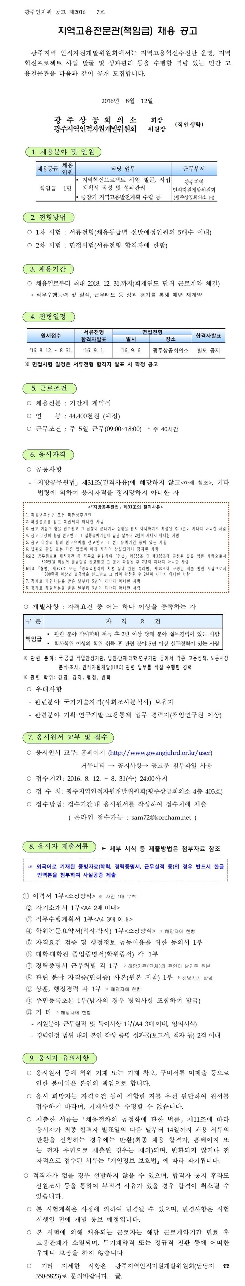[제2016-7호] 지역고용전문관(책임급)채용 재공고