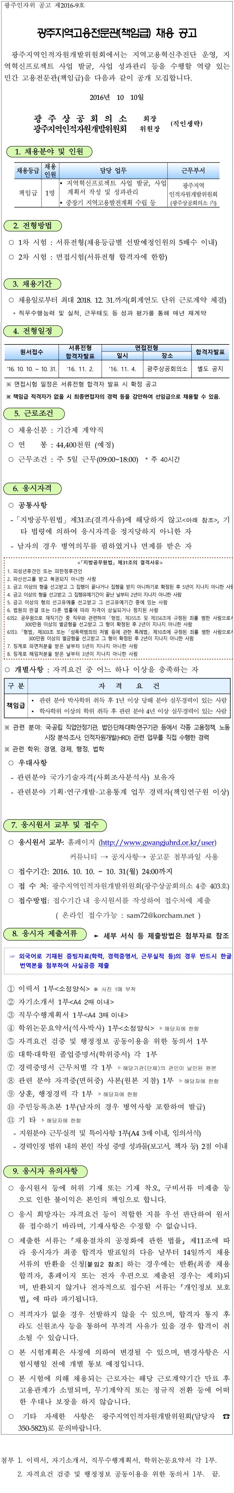 [제2016-9호] 광주지역고용전문관(책임급) 채용 공고
