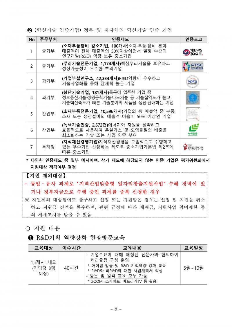 (지역혁신프로젝트) 『전략산업 핵심동력 고도화지원』R&D역량강화 및 기업지원 수혜기업 2차 모집공고