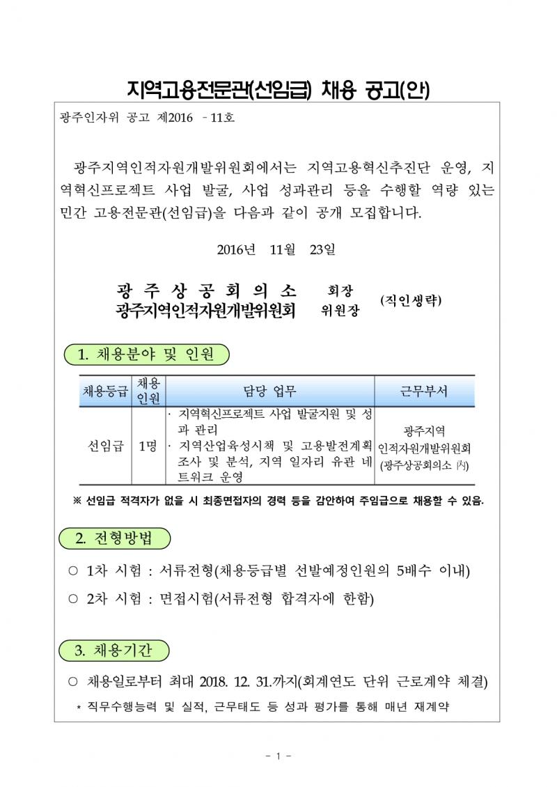 [제2016-11호] 지역고용전문관(선임급) 공고