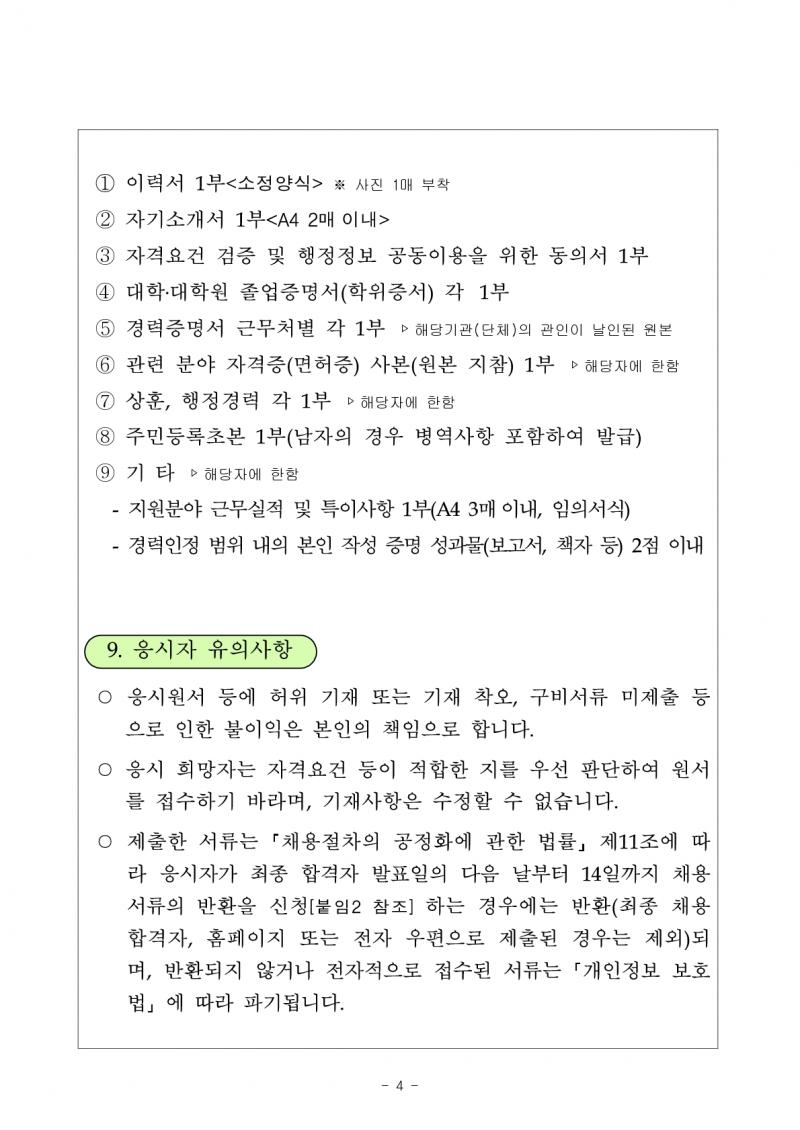 ④~⑨번은 서류전형 합격자에 한해 면접당일 제출 요망