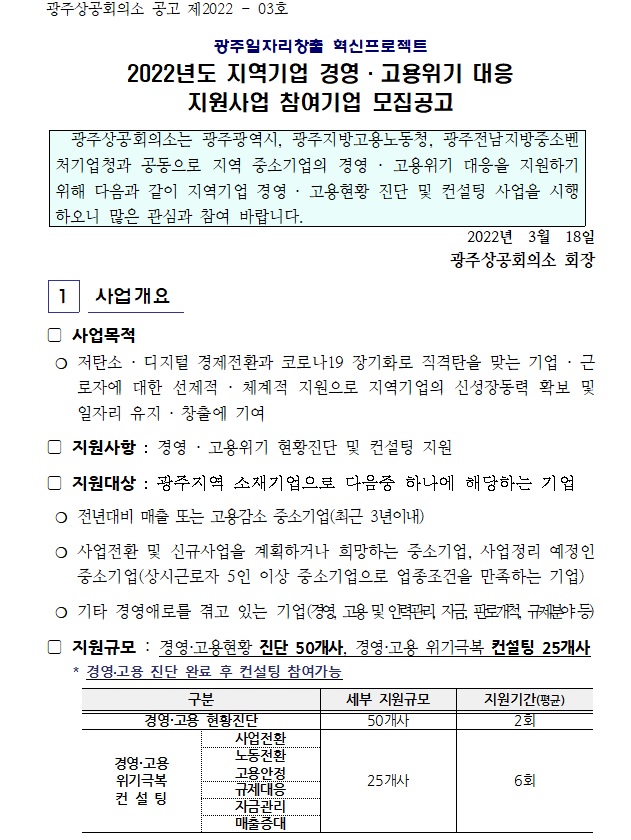 (지역혁신프로젝트) 2022년도 지역기업 경영.고용위기 대응 지원사업 참여기업 모집공고