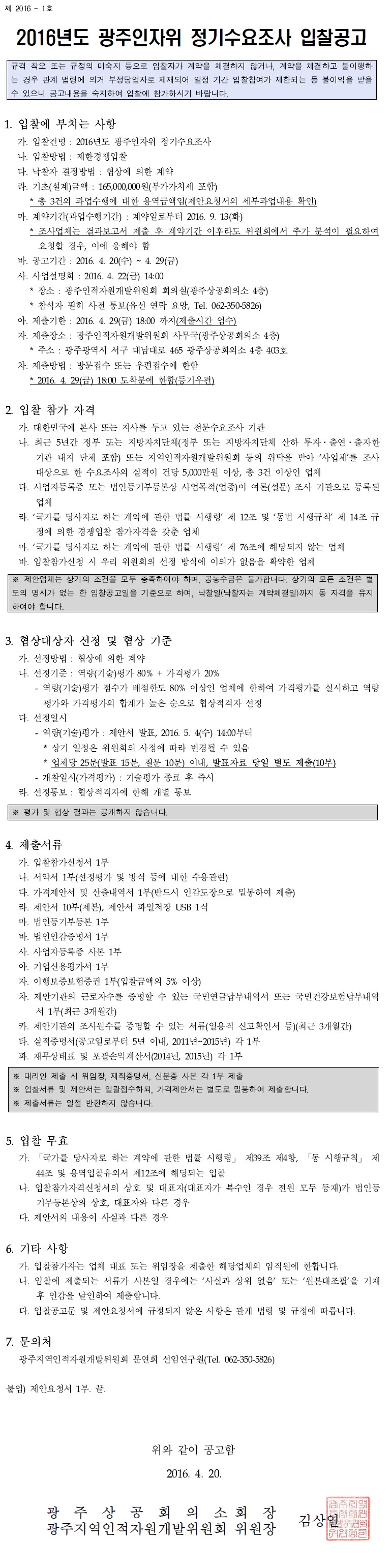 [제2016-1호] 2016년도 광주인자위 정기수요조사 입찰공고