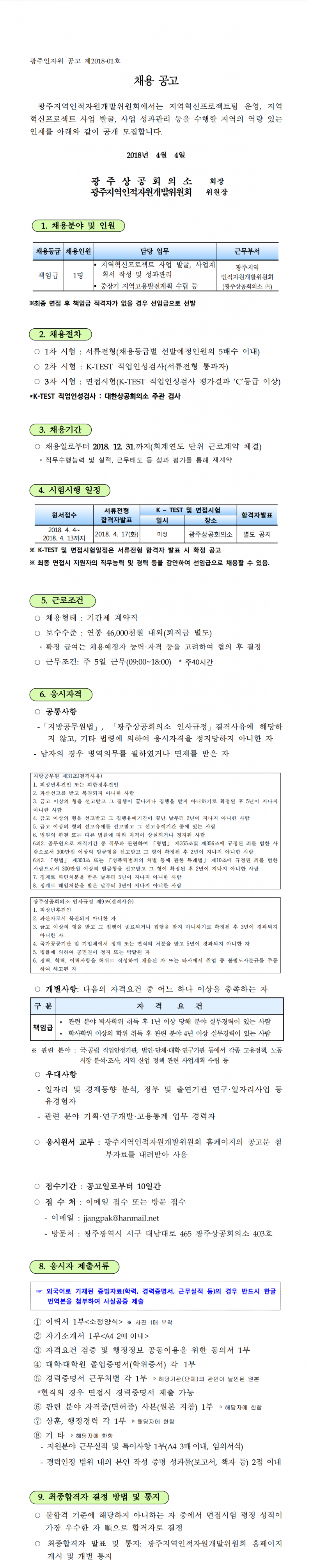 [제2018-01호] 광주지역인적자원개발위원회 책임급 직원 공개 모집