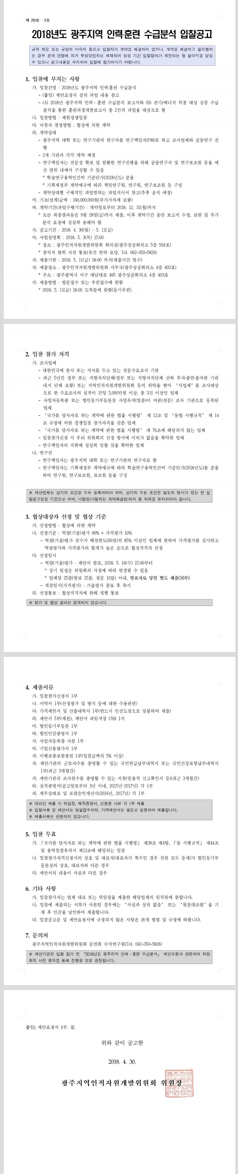 [제2018-2호] 2018년도 광주지역 인력훈련수급분석 입찰공고(수정_최종)