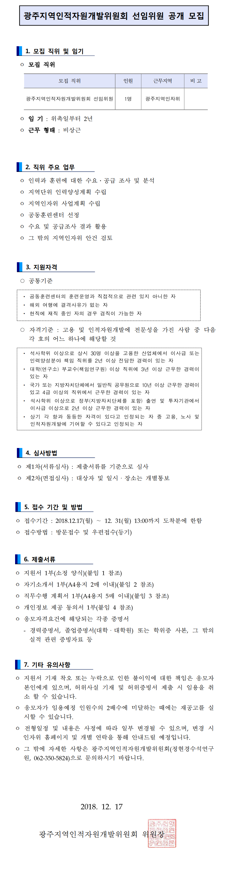 [제2018-7호] 광주지역인적자원개발위원회 선임위원 공개 모집