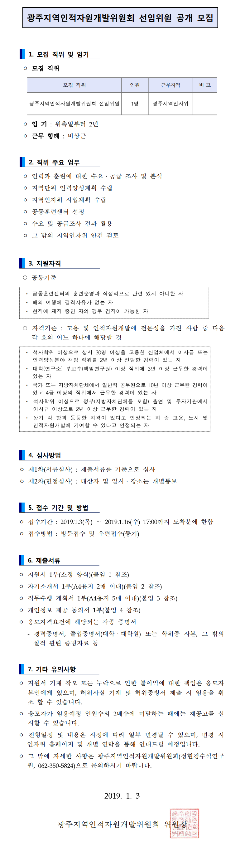 [제2019-1호] 광주지역인적자원개발위원회 선임위원 공개 모집