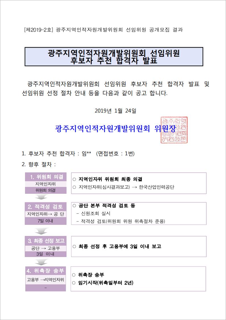 [제2019-2호] 광주지역인적자원개발위원회 선임위원 공개모집 결과