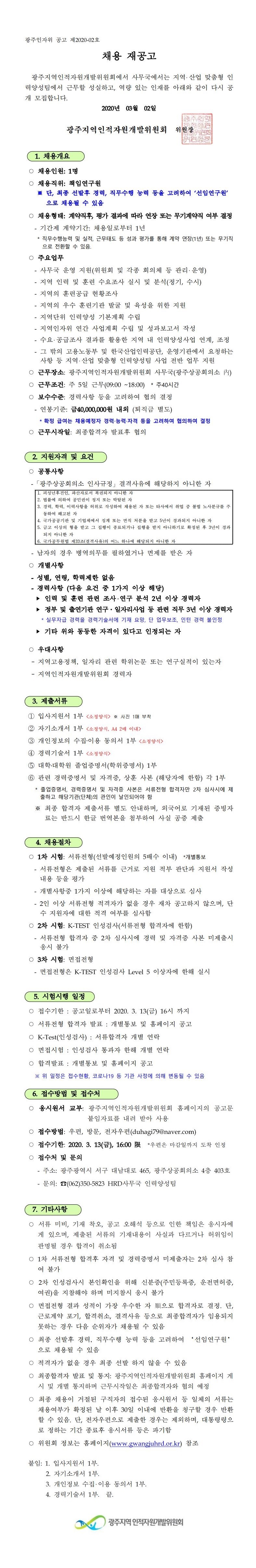 * 재공고 사유 : 2인이상 서류전형 적격자가 없어 재공고함. (공고문 ‘채용절차’ 의거)