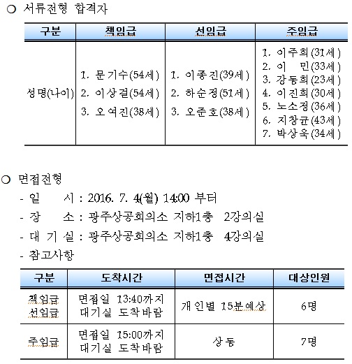 지역고용전문관 서류전형 합격자 및 면접전형 안내