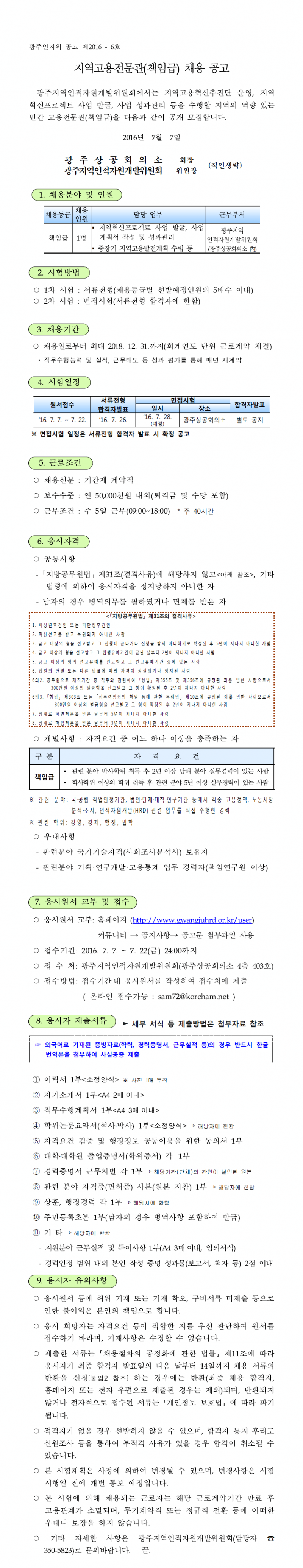 [제2016-6호] 지역고용전문관(책임급)채용공고
