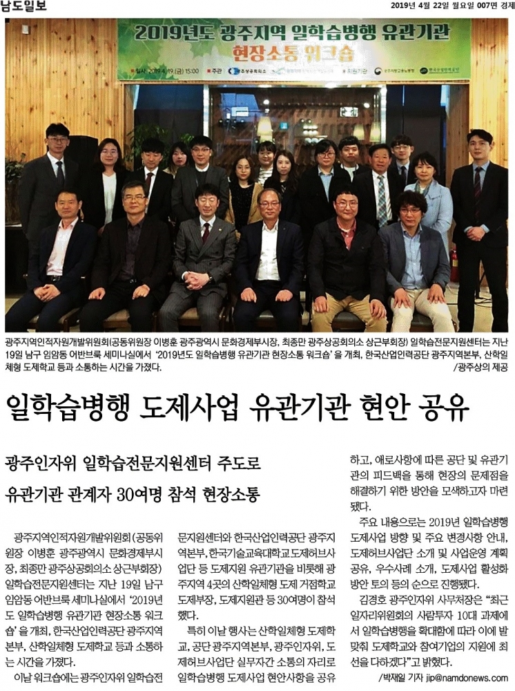 [2019.04.22] 남도일보_007면, 일학습병행 도제사업 유관기관 현안 공유