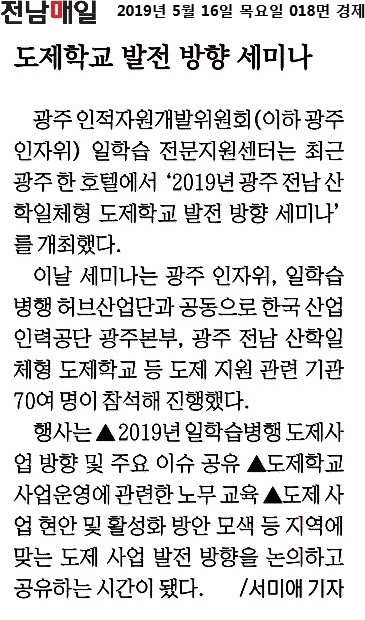 [2019.05.16] 전남매일 018면, 도제학교 발전 방향 세미나