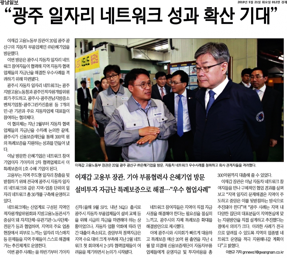 [2019.05.21] 광남일보, 광주 일자리 네트워크 성과 확산 기대