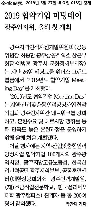 2019-06-27_전남일보_013면_2019 협약기업 미팅데이.jpg : 0.25 M