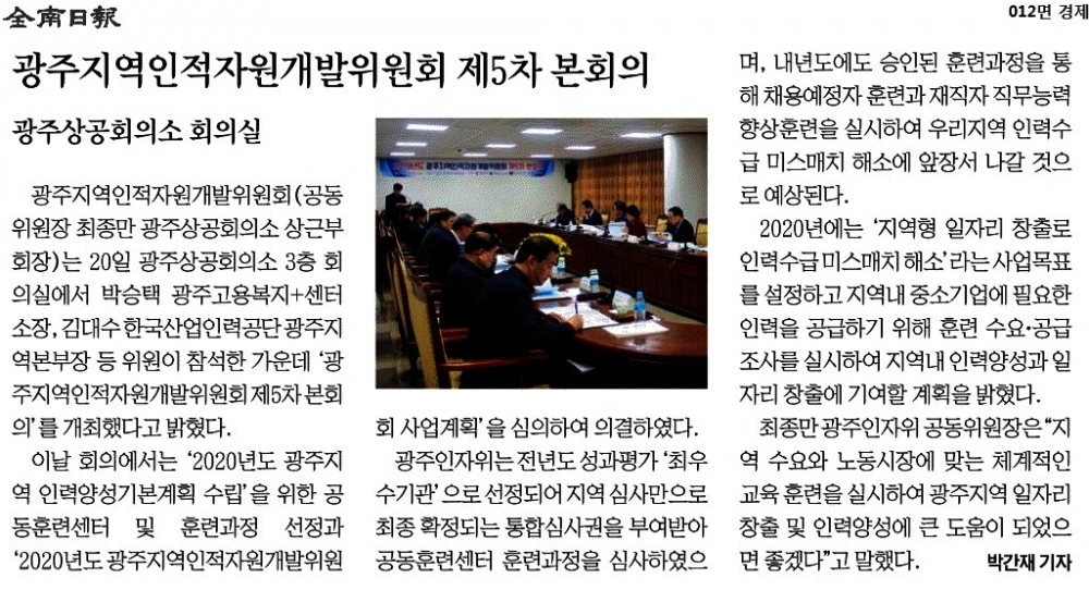 [2019.11.21] 전남일보 012면, 광주지역인적자원개발위원회 제5차 본회의