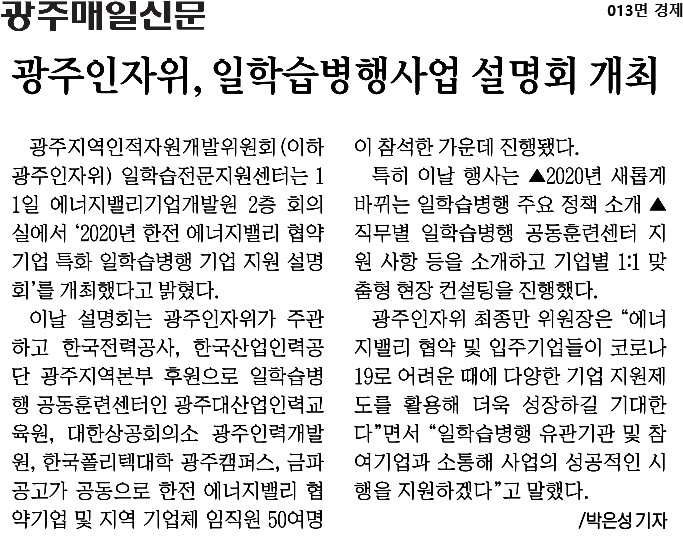 2020-06-12_광주매일신문_013면_광주인자위, 일학습병행사업 설명회 개최.jpg : 0.30 M