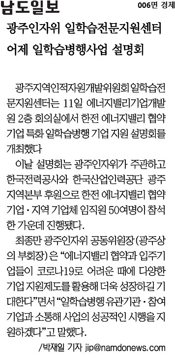 2020-06-12_남도일보_006면_광주인자위 일학습전문지원센터 어제 일학습병행사업 설명회.jpg : 0.20 M