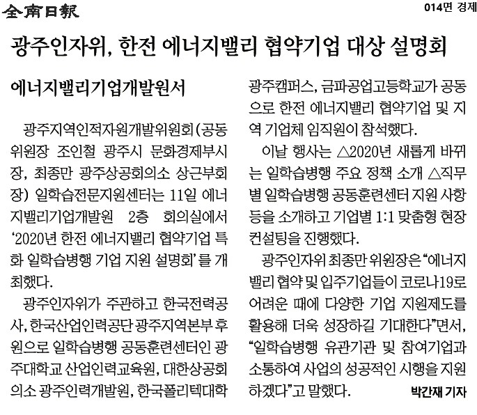 2020-06-12_전남일보_014면_광주인자위, 한전 에너지밸리 협약기업 대상 설명회.jpg : 0.31 M