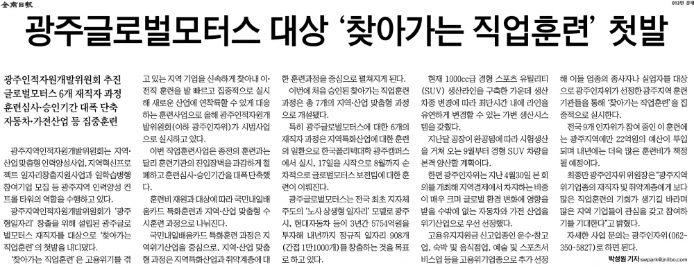 2021-05-13_전남일보_013면_광주글로벌모터스 대상 찾아가는 직업훈련 첫발.jpg : 362.58 M