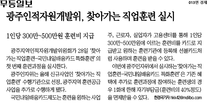 [2021.07.27] 무등일보, 광주인적자원개발위, 찾아가는 직업훈련 실시