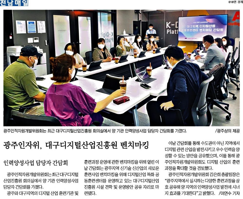 [2022.07.05.] 전남매일 018면 광주인자위, 대구디지털산업진흥원 벤치마킹
