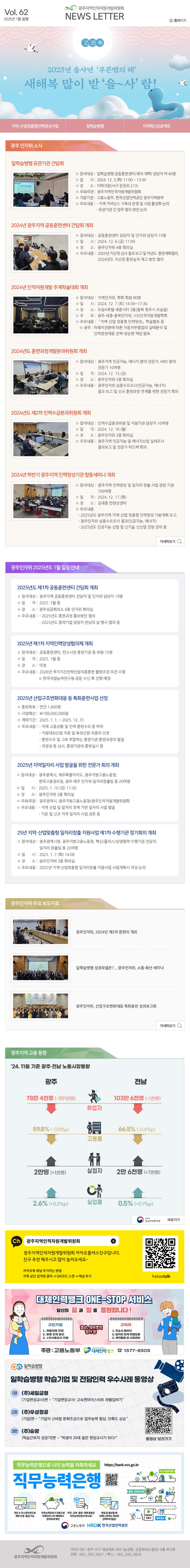 2025 광주지역인적자원개발위원회 1월호 뉴스레터