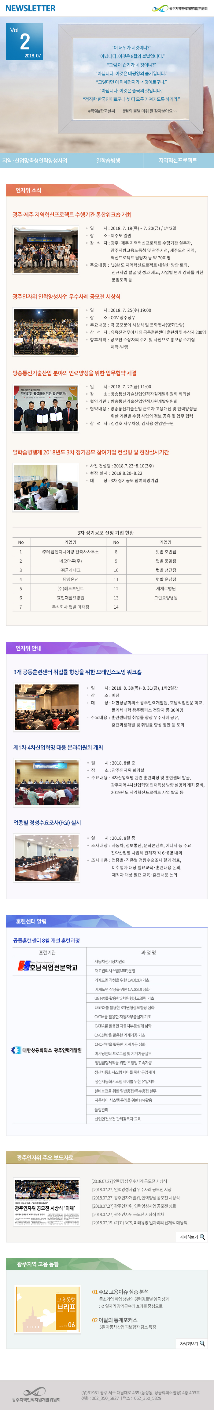 2018 광주지역인적자원개발위원회 7월호 뉴스레터