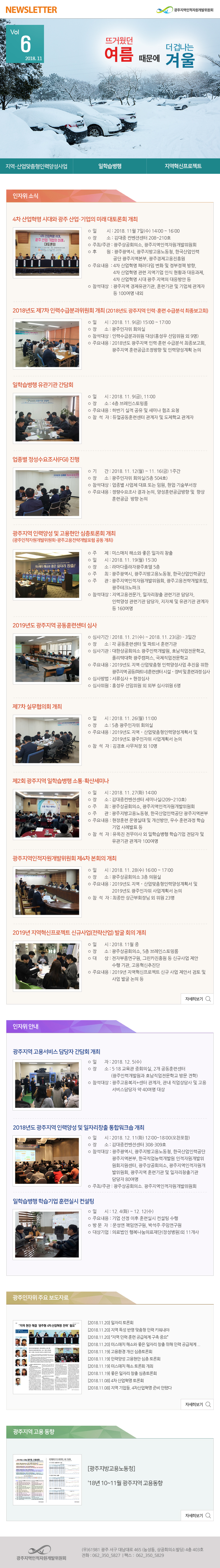 2018 광주지역인적자원개발위원회 11월호 뉴스레터