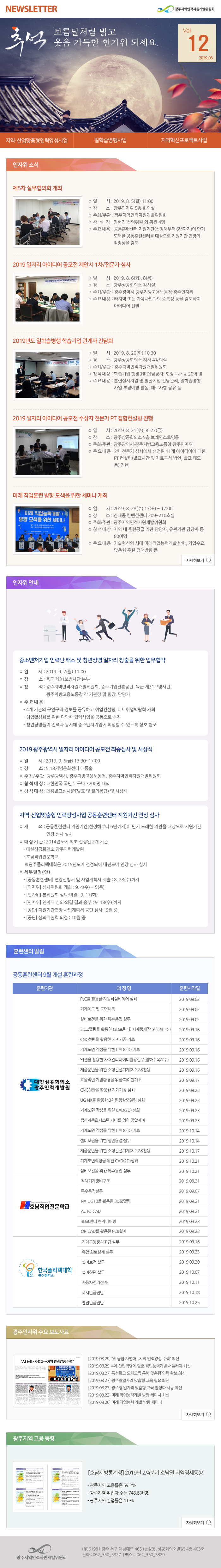 2019 광주지역인적자원개발위원회 8월호 뉴스레터