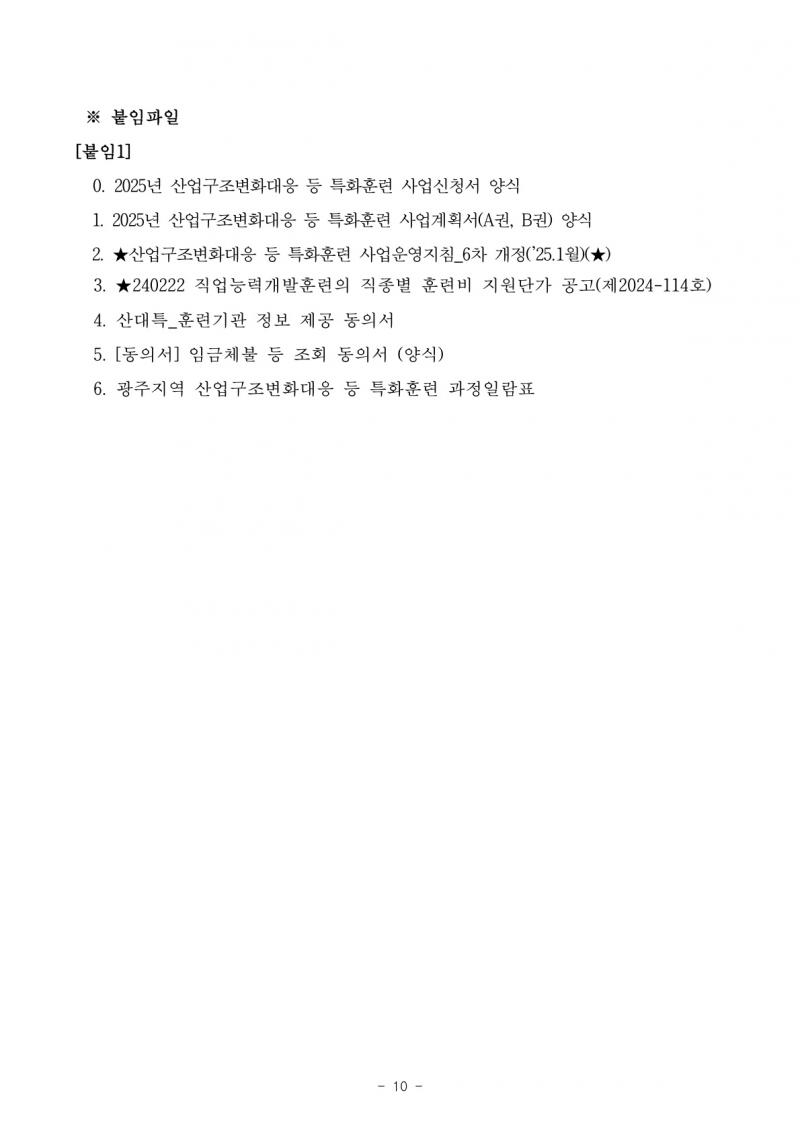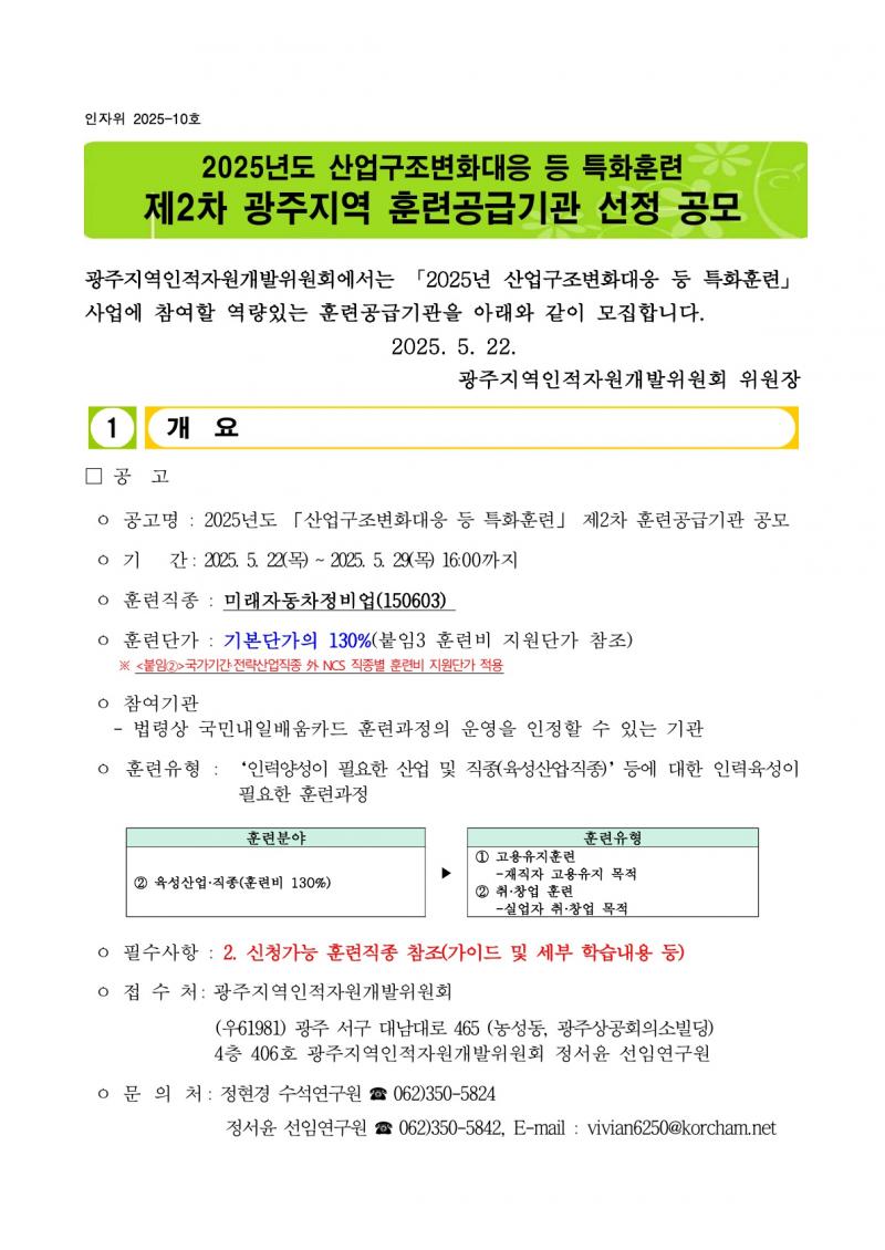 [인자위공고 2025-10호] 2025년도「산업구조변화대응 등 특화훈련」제2차 광주지역 훈련공급기관 선정 공모