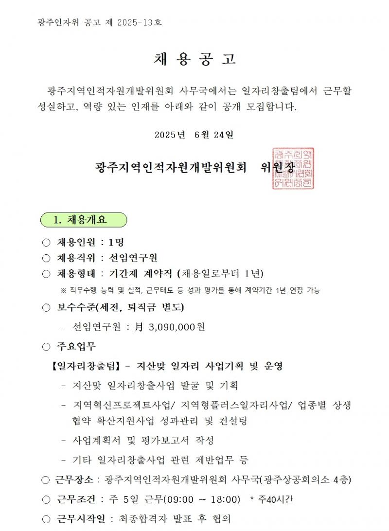 [인자위 공고 제2025-13호] 2025년도 광주지역 인적자원개발위원회 신규 직원 채용 공고.pdf : 0.28 M