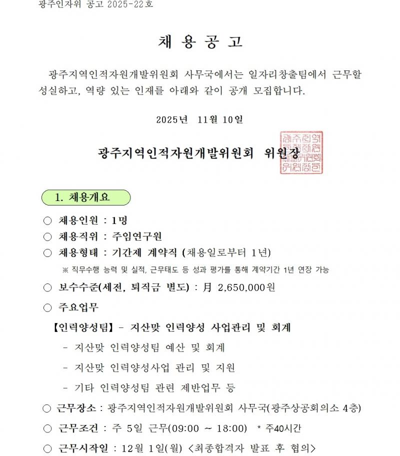 [인자위 공고 제2025-22호] 2025년도 광주지역 인적자원개발위원회 신규 직원 채용 공고.pdf : 0.28 M
