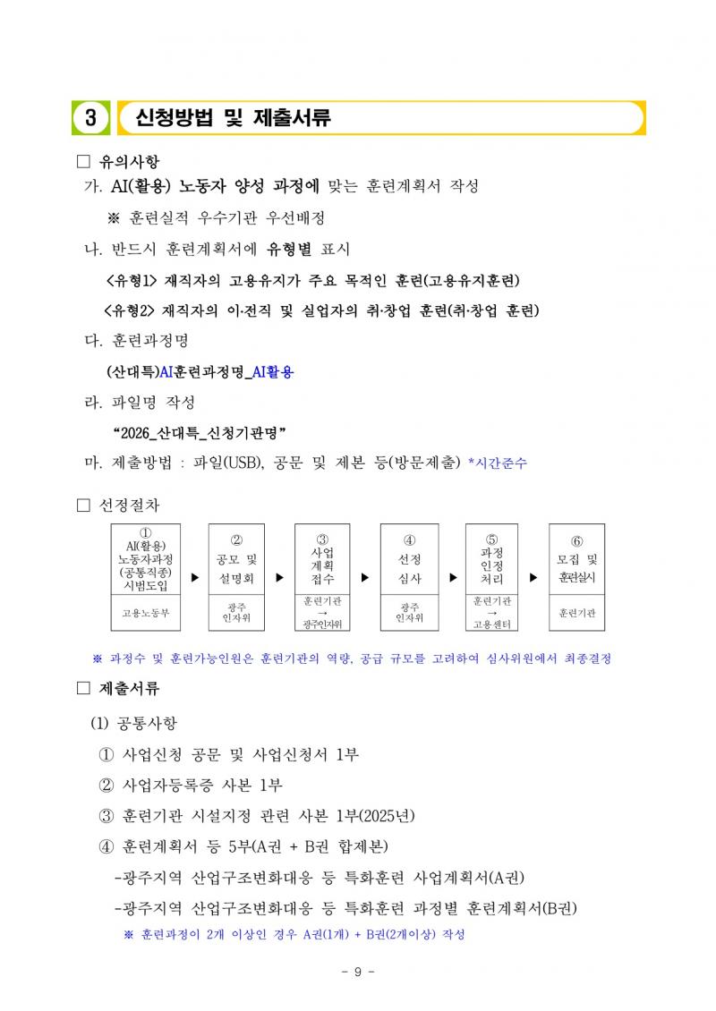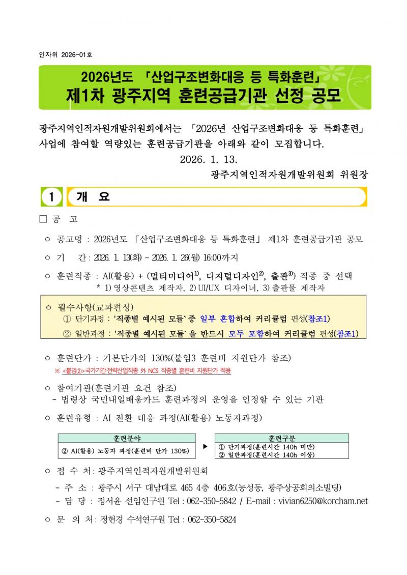 [인자위공고 2026-01호] 2026년도「산업구조변화대응 등 특화훈련」제1차 광주지역 훈련공급기관 선정 공모