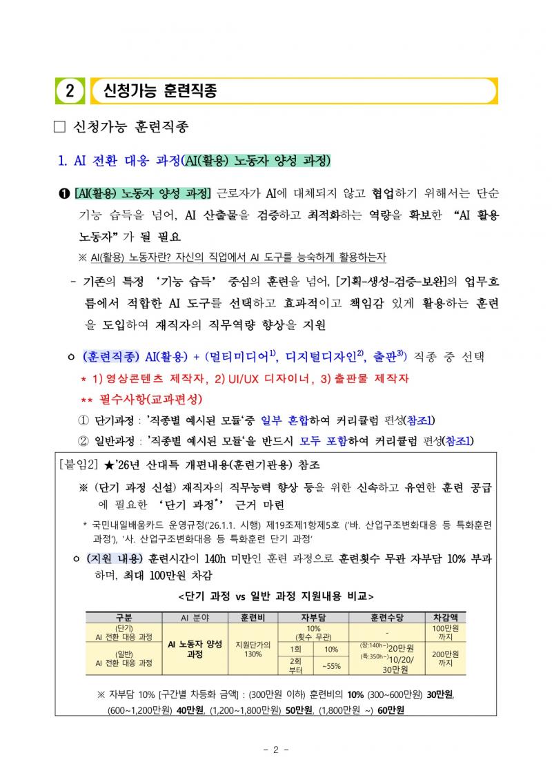 (공고문) 2026년도 산업구조변화대응등 특화훈련 공급기관 1차공고(전체).pdf : 0.41 M