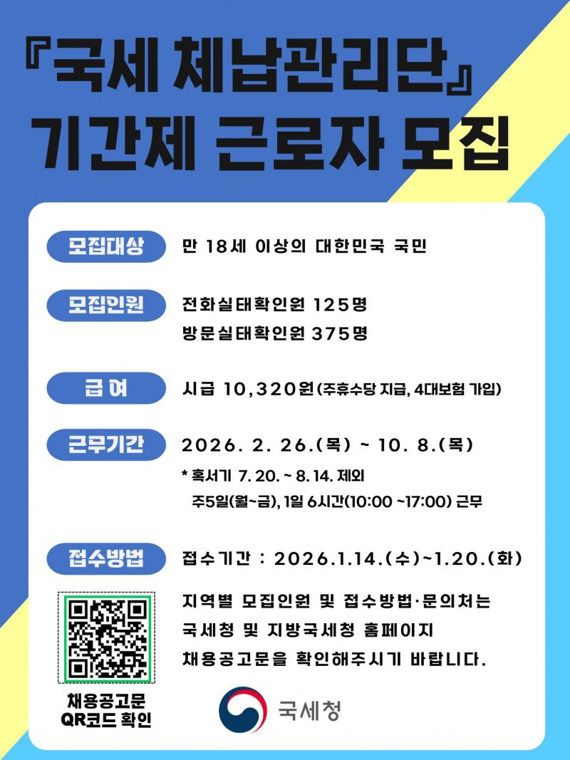 (타기관공고-광주지방국세청) 2026년 국세청 국세 체납관리단 기간제 근로자 채용 공고