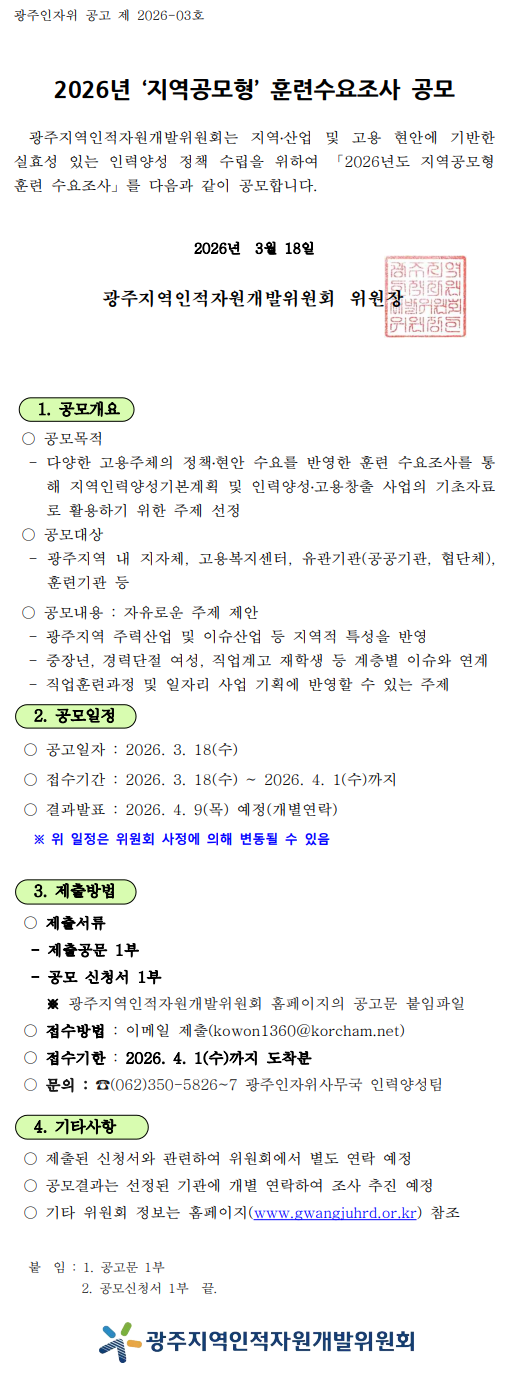 [인자위공고 2026-03호] 2026년 광주인자위 지역공모형 훈련 수요조사 공모