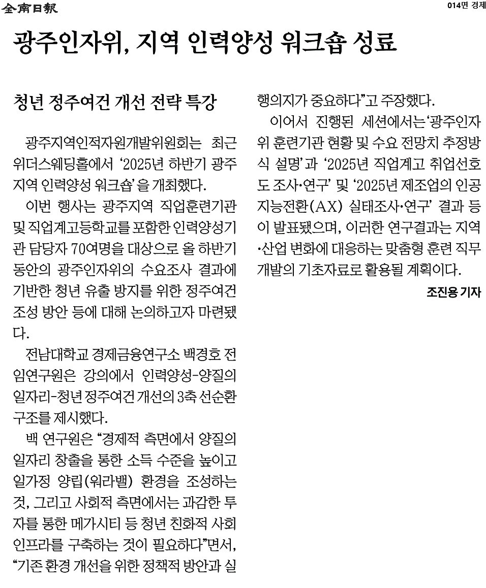 2025-12-22_전남일보_014면_광주인자위, 지역 인력양성 워크숍 성료.jpg : 0.27 M